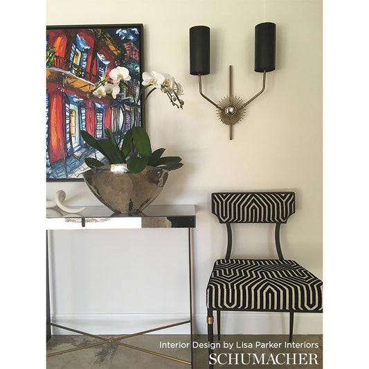 SCHUMACHER DRUSUS TABOR VENETIAN ZIG ZAG BLOCK PRINT PRINTS PRINTS BLACK ON NATURAL - 181562