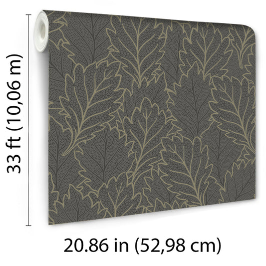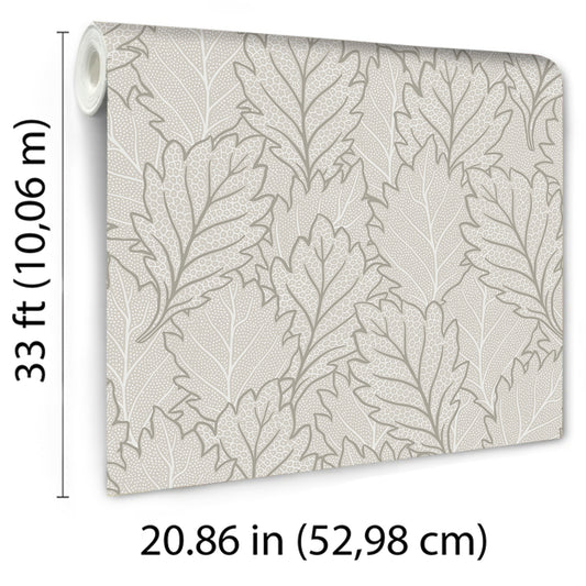 VEER DECOR Quercus Leaves Gray Wallpaper Nature Traditional, Transitional Gray Wallpaper - 8421-ANT-AG4