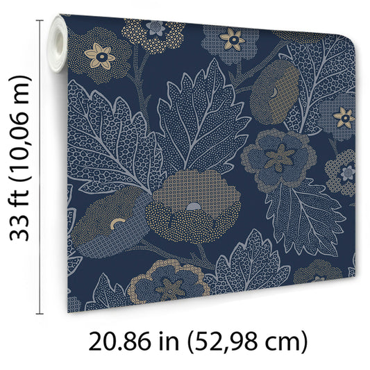 VEER DECOR Antibes Flora Navy Wallpaper Floral Traditional, Transitional Navy Wallpaper - 8421-ANT-AH4