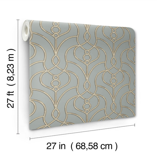 York Wallcoverings Candice Olson Casual Elegance Divine Trellis Dusty Blue Wallpaper Geometrics Blues - EV3948