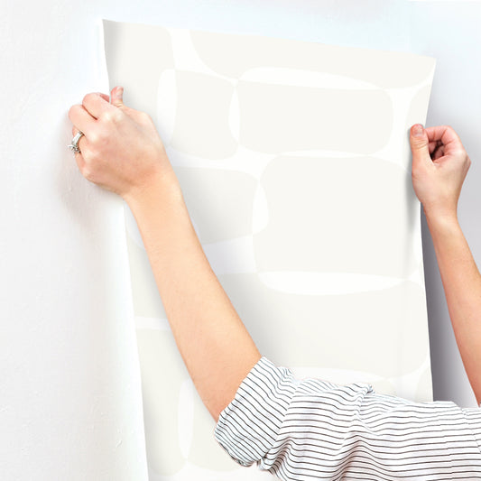 York Wallcoverings RoomMates Tess Watercolor Cream Checker Peel and Stick Wallpaper Modern Graphics Whites and Off-Whites Wallpaper - RMK12773PLW