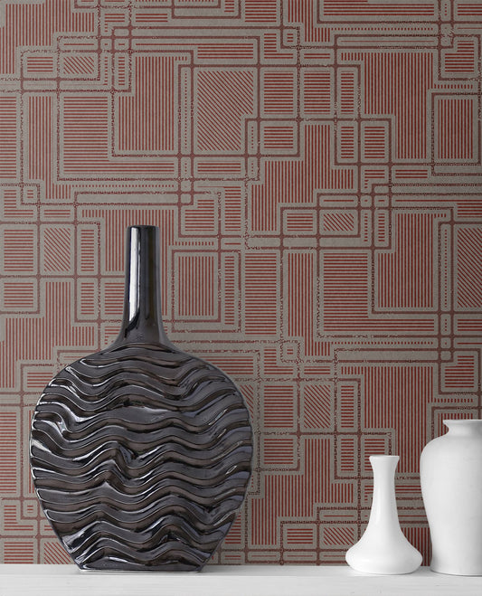 Seabrook Designs Mondrian Bauhaus Cityscape Geometric Art Deco Red Matte - KTM1718