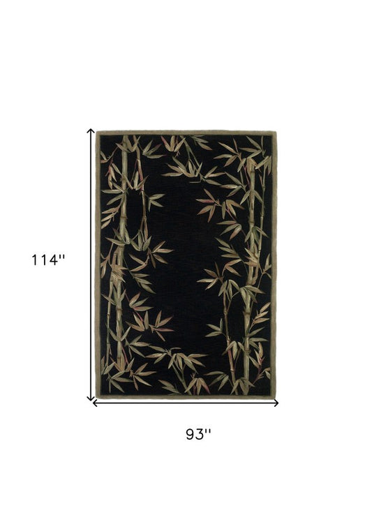 8' X 11' Black Green And Brown Wool Tropical Botanical Hand Tufted Area Rug