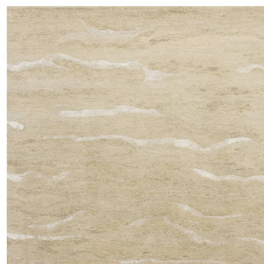 9' X 12' Sand Beige Wool Geometric Hand Tufted Area Rug