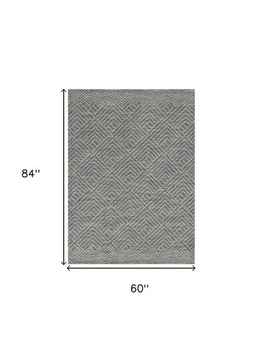 5' X 7' Gray And Light Gray Wool Geometric Hand Tufted Area Rug