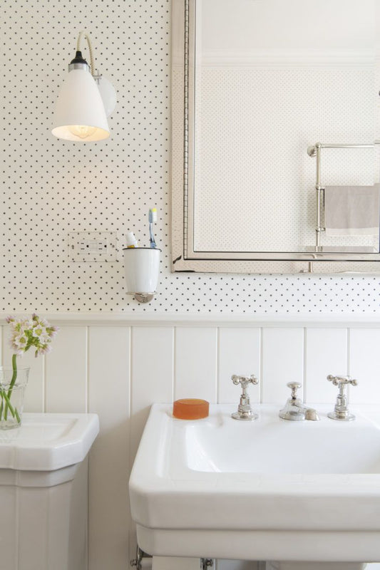 SCALAMANDRE LEE DOTS , CIRCLES GEOMETRIC SMALL SCALE BLACK ON WHITE - WHN000EP0665 NEW SKU # WHNP0665000E