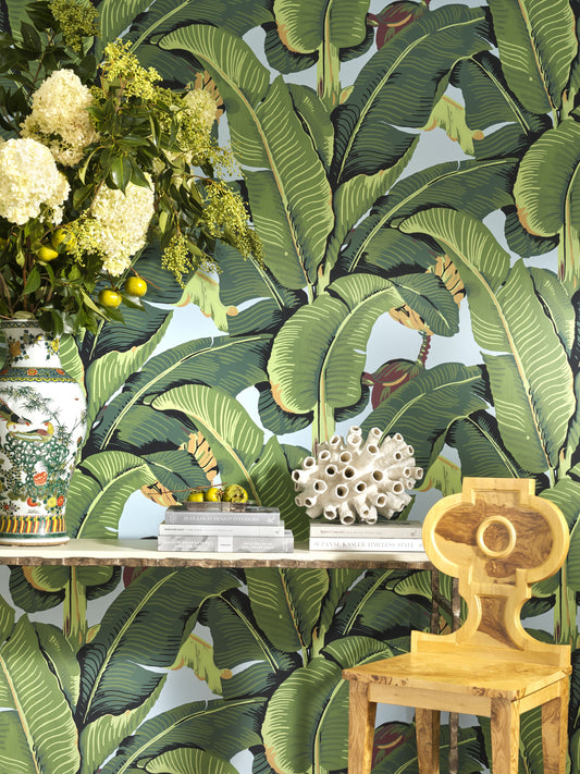 SCALAMANDRE HINSON PALM - WIDE WIDTH BOTANICAL , FOLIAGE SKY - WHN000244000 NEW SKU # WHN440000002