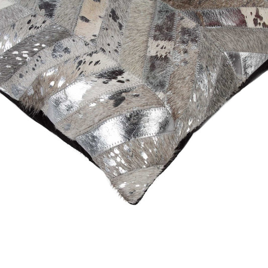 18" Gray and Silver Striped Cowhide Throw Pillow