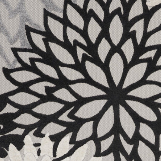 Reduced Price10' X 13' Black And White Floral Indoor Outdoor Area Rug