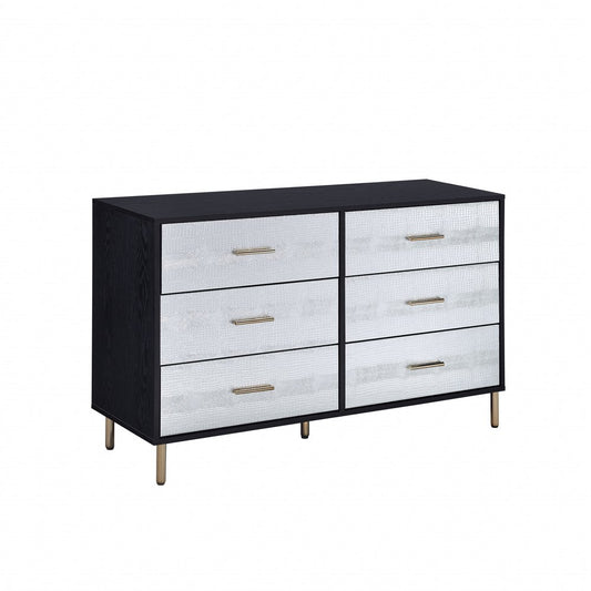47" Black Silver and Gold Faux Croc Design Six Drawer Double Dresser
