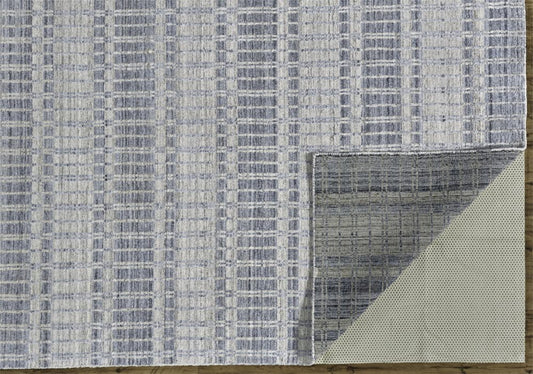 7' X 9' Ivory And Blue Striped Hand Woven Area Rug