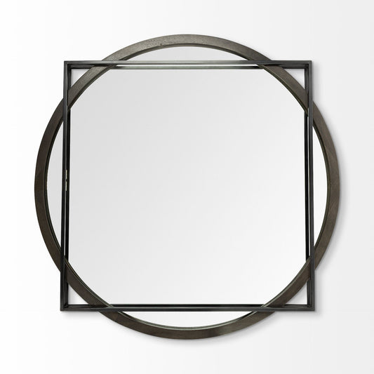 46" Black Abstract Metal Framed Accent Mirror
