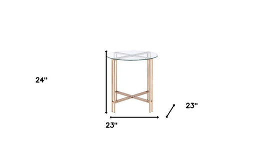 24" Champagne And Clear Glass And Metal Round End Table