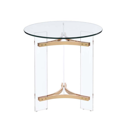 24" Gold And Clear Glass And Metal Round End Table