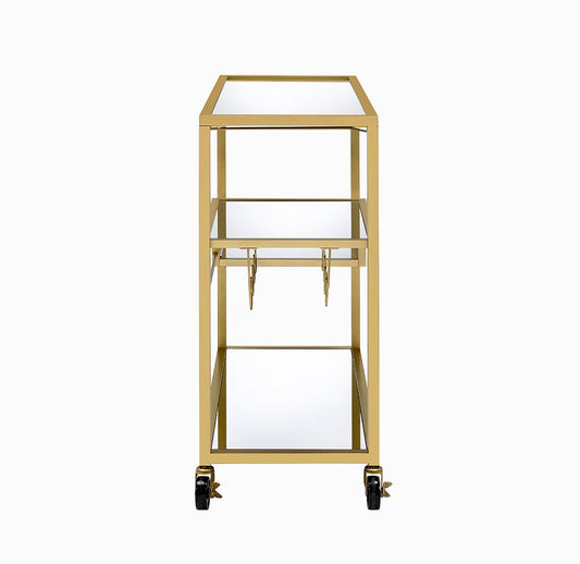 33" X 19" X 35" Champagne Metal Tube Serving Cart
