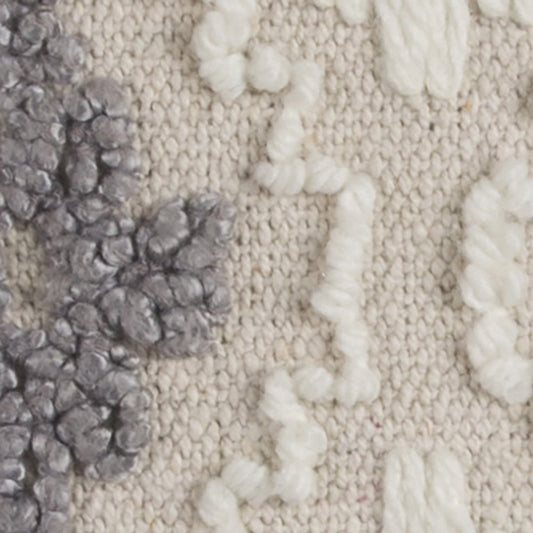 20" Cream And White Striped Canvas Throw Pillow Cover with Embroidery And Pompoms