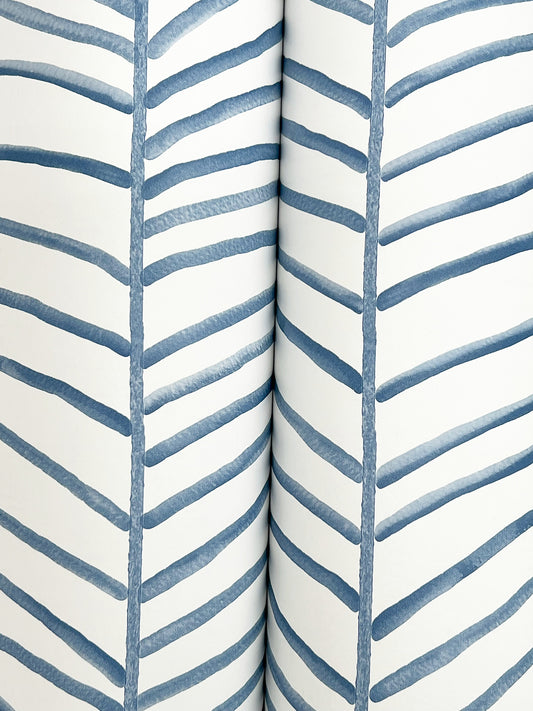 York Wallcoverings Water's Edge Resource Library Painted Herringbone Navy Wallpaper Small Prints Blues - CV4455