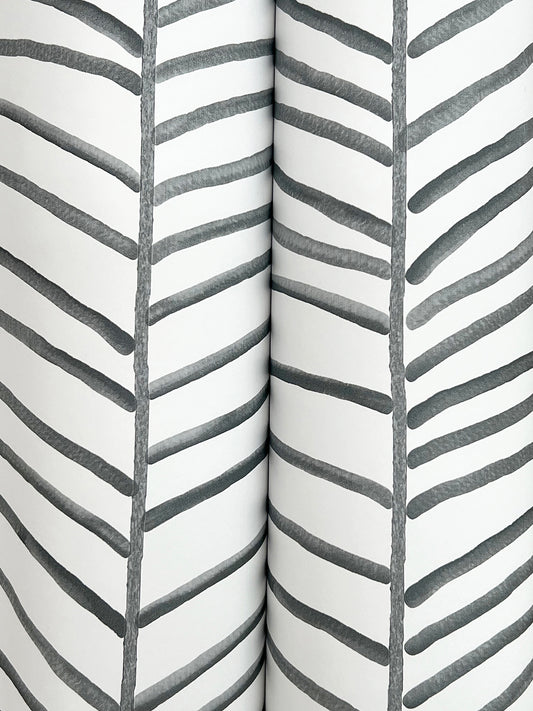 York Wallcoverings Montecito Cascade Palm Chevron Onyx Wallpaper Coastal Chevron Blacks - MT5673