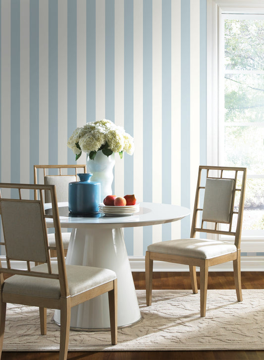 York Wallcoverings Blues II 3" Stripe Blue & White Wallpaper Stripes Stripes Blue & White - SA9176