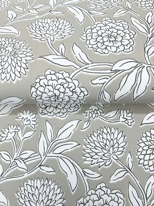 York Wallcoverings Antonina Vella Chatsworth Garden Taupe Floral Trail Wallpaper Botanical Modern Taupe Wallpaper - VP1363