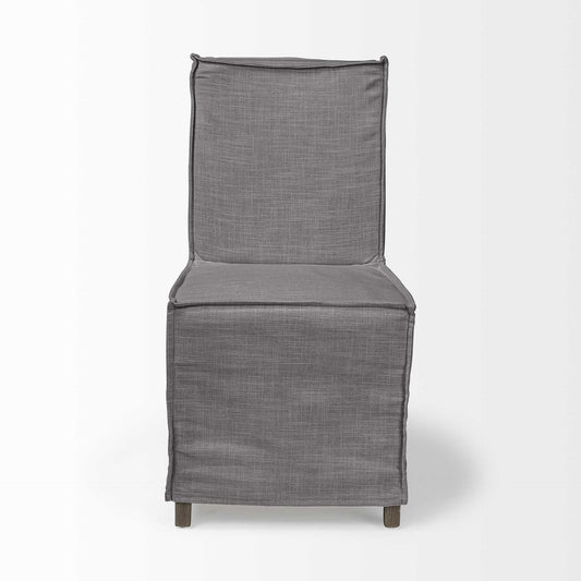 Set Of Two Gray And Brown Slipcovered Wood Parsons Chairs