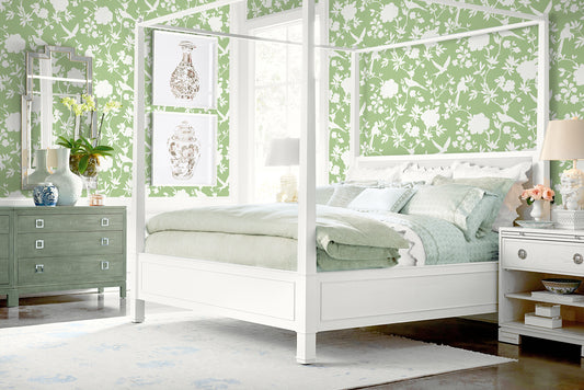 Lillian August Coastal Haven Kauai Bird Toile Toile Traditional Green Matte - LN40904