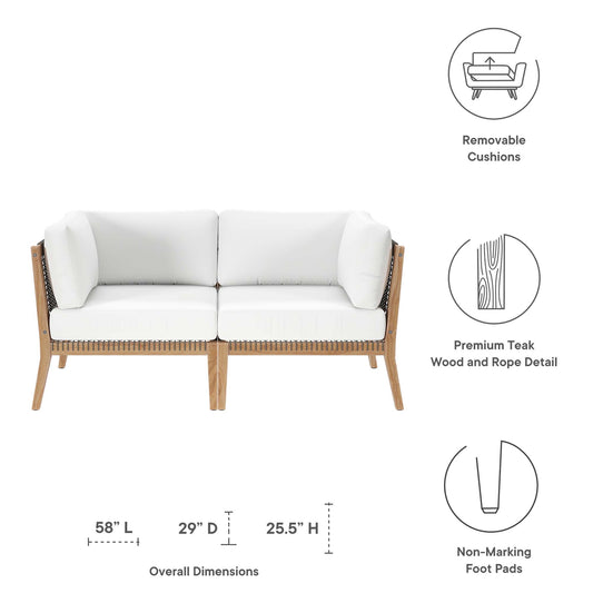 Modway - Clearwater Outdoor Patio Teak Wood Loveseat by Modway Outdoor Furniture Sofa Sectionals White - EEI-6119-GRY-WHI