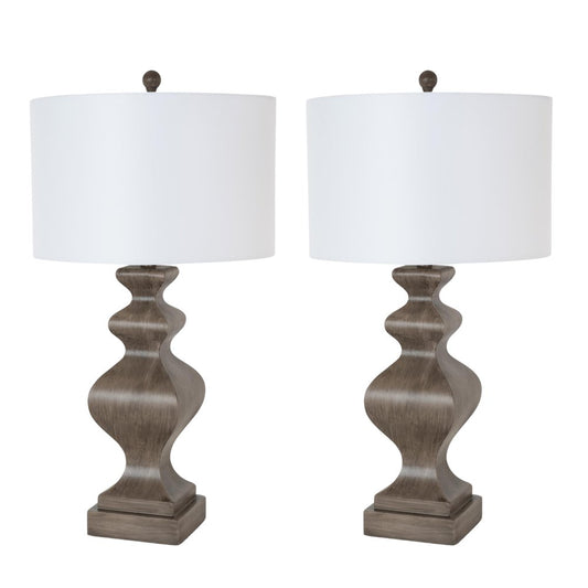 Set of Two 30" Distressed Brown Table Lamp With White Cone Shade