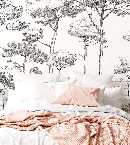 Veer Decor Pines Pack 1 & 2 in Black Wall Mural Landscape Mural Black Mural - 8184-BDL-BT1