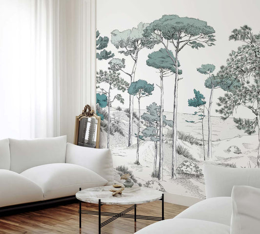 Veer Decor Pines Pack 1 in Green Wall Mural Landscape Mural Green Mural - 8184-BT2-A