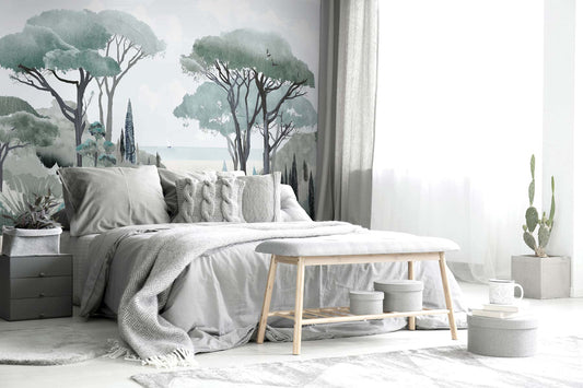 Veer Decor Pines Pack 1 & 2 in Green Wall Mural Landscape Mural Green Mural - 8184-BDL-BT2