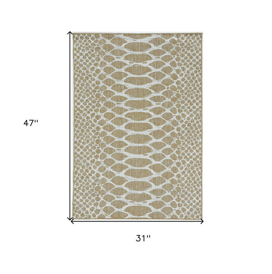 2' X 4' Beige Geometric Indoor Outdoor Area Rug