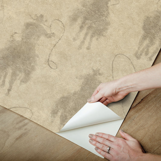 York Wallcoverings RoomMates Yellowstone Stockman Silhouette Beige Peel and Stick Wallpaper Country Graphics Browns Wallpaper - RMK12803PLW