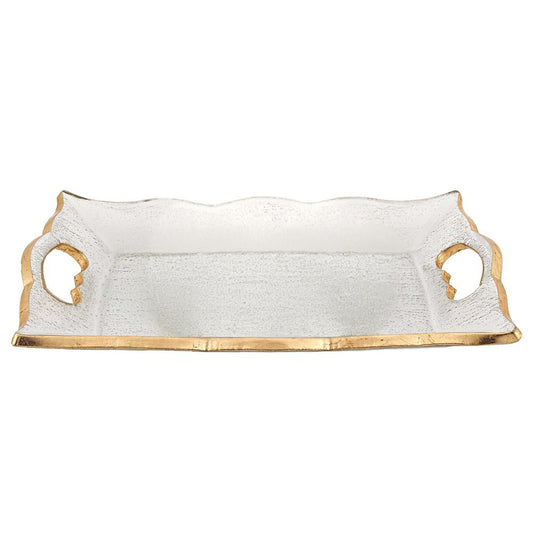 14" Clear and Gold Bubble Glass Scalloped Rim Rectangular Tray