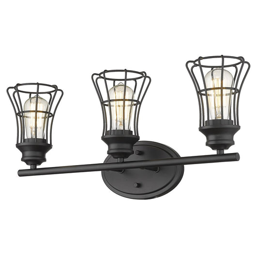 Three Light Matte Black Cage Wall Sconce