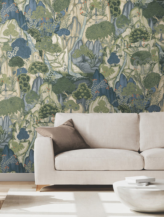 York Wallcoverings Ronald Redding Falling Waters Sapphire Scenic Wallpaper Woods & Forests Modern Sapphire Wallpaper - VR1554