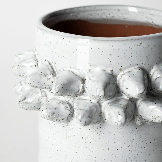 12" White Abstract Cylinder Ceramic Table Vase