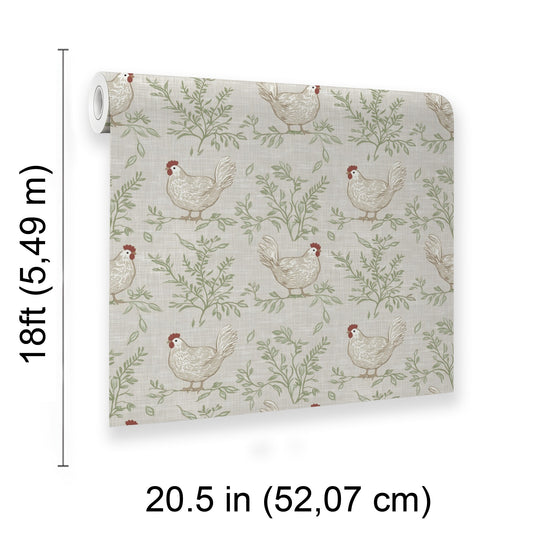 Veer Decor Cluckingham Toile Peel and Stick Wallpaper Animals, Patterns Transitional, Traditional, Novelty Green Wallpaper - 8335-AF