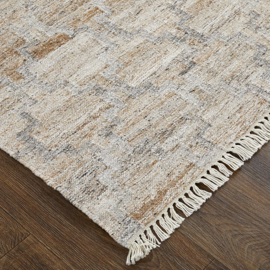 4' X 6' Tan and Gray Geometric Hand Woven Area Rug With Fringe