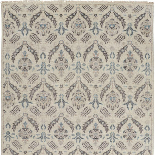 5' X 8' Gray and Ivory Wool Floral Hand Knotted Area Rug