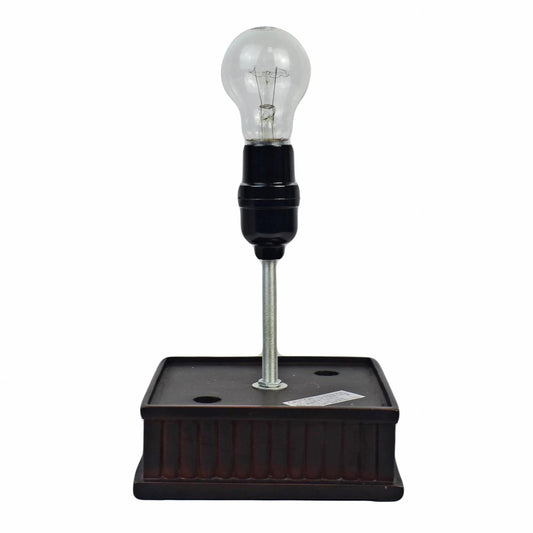 19" Dark Brown Metal Candlestick Table Lamp With Red and Black Dome Shade