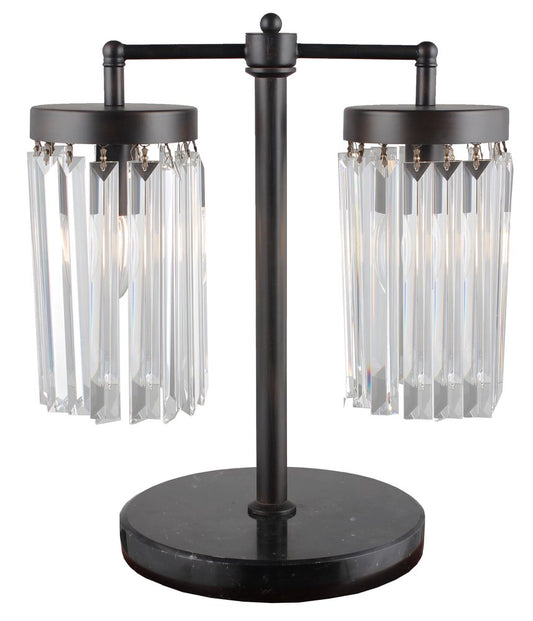 21" Dark Brown Metal Two Light Candlestick Table Lamp With Beige Shade