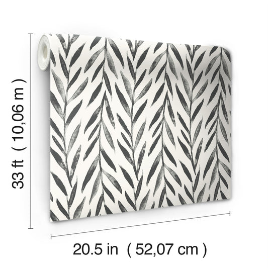 York Wallcoverings Magnolia Home Artful Prints and Patterns Willow Black Wallpaper Botanical Blacks - MK1136