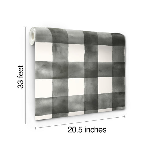York Wallcoverings Magnolia Home Watercolor Check Black and White Wallpaper Whites and Off-Whites - MH1516