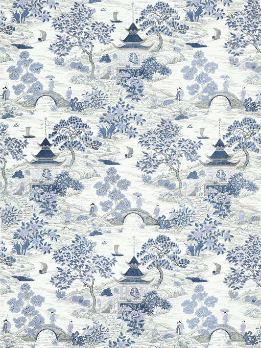 SCALAMANDRE SATOMI - WALLCOVERING CHINOISERIE SCENIC EVENING BLUE - SC 0003WP88554 NEW SKU # SCWP885540003