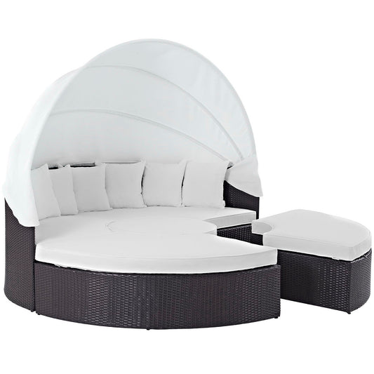 Modway Outlet Convene Outdoor Patio Wicker Rattan Canopy Sectional Daybed by Modway Outdoor Furniture Furniture Espresso White - EEI-2173-EXP-WHI-SET