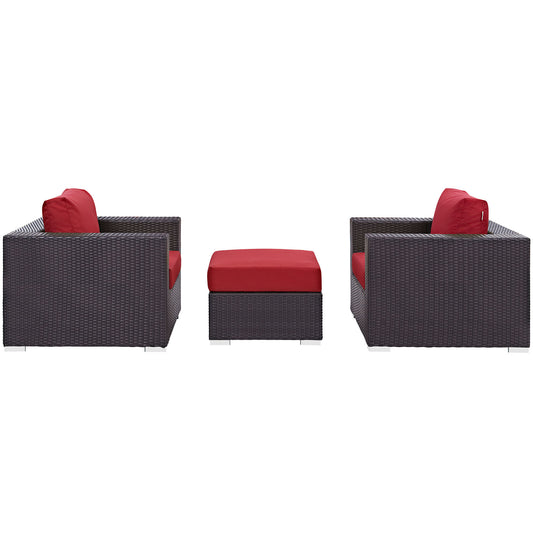 Modway Outlet Convene 3 Piece Outdoor Patio Sofa Set by Modway Outdoor Furniture Furniture Espresso Red - EEI-2178-EXP-RED-SET