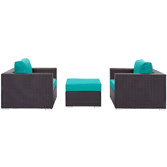 Modway Outlet Convene 3 Piece Outdoor Patio Sofa Set by Modway Outdoor Furniture Furniture Espresso Turquoise - EEI-2178-EXP-TRQ-SET