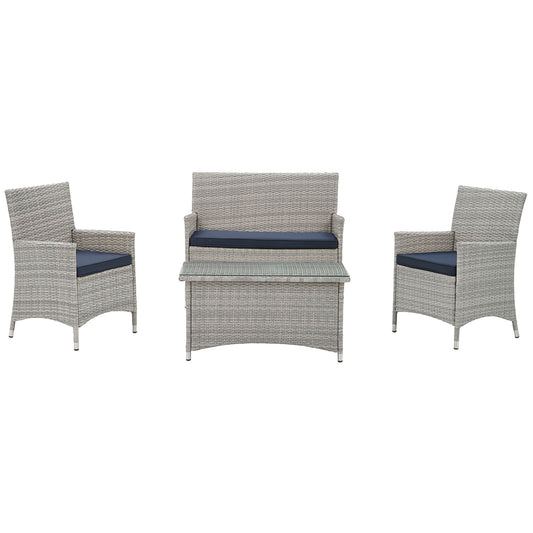 Modway Outlet Bridge 4 Piece Outdoor Patio Patio Conversation Set by Modway Outdoor Furniture Furniture Light Gray Navy - EEI-2212-LGR-NAV