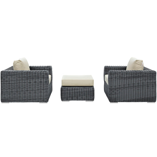 Modway Outlet Summon 3 Piece Outdoor Patio Sunbrella? Sectional Set by Modway Outdoor Furniture Furniture Canvas Antique Beige - EEI-1905-GRY-BEI-SET